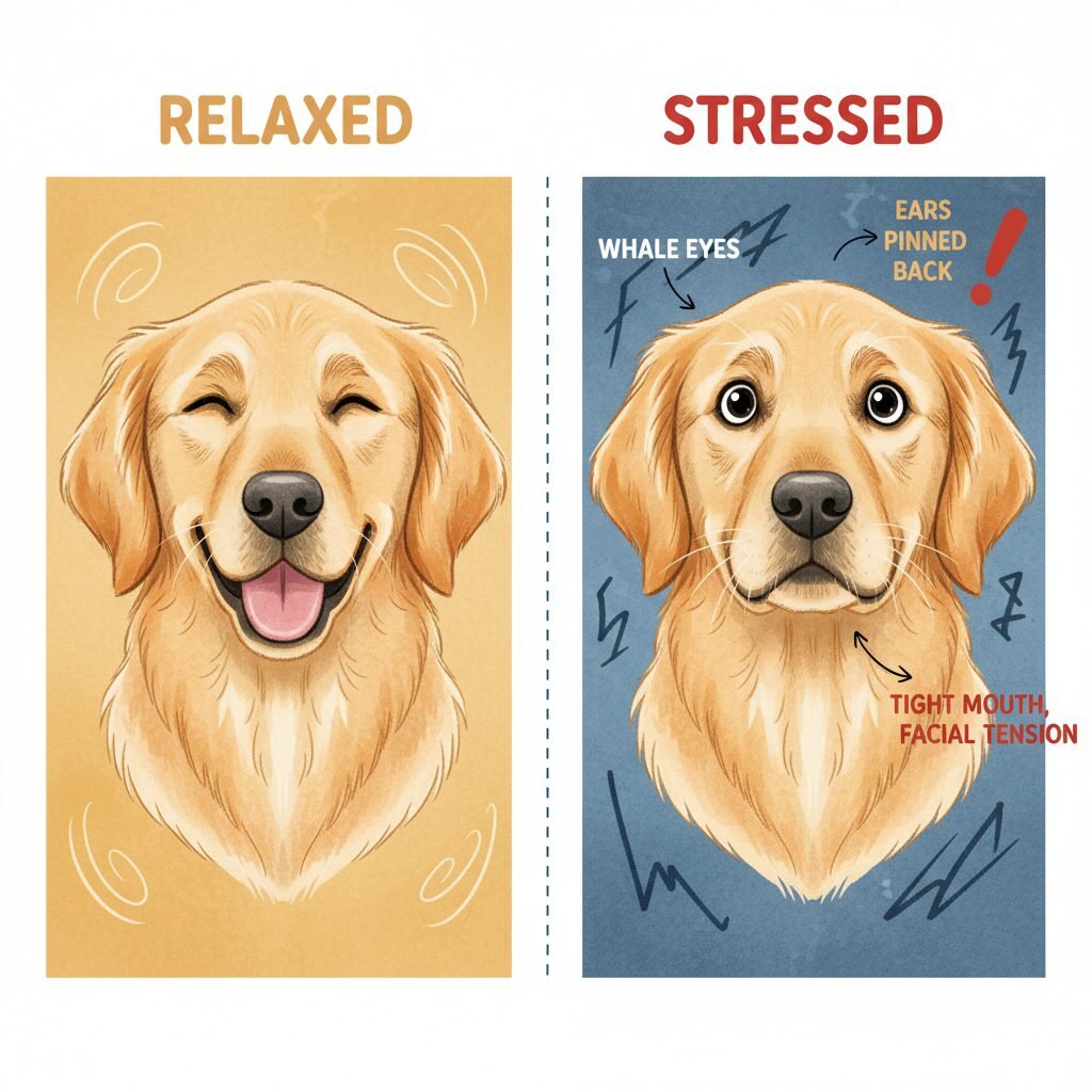 - Whale Eye: The dog turns its head away but keeps its eyes fixed on the trigger, showing the whites of its eyes in a crescent shape. This is a clear sign of anxiety.