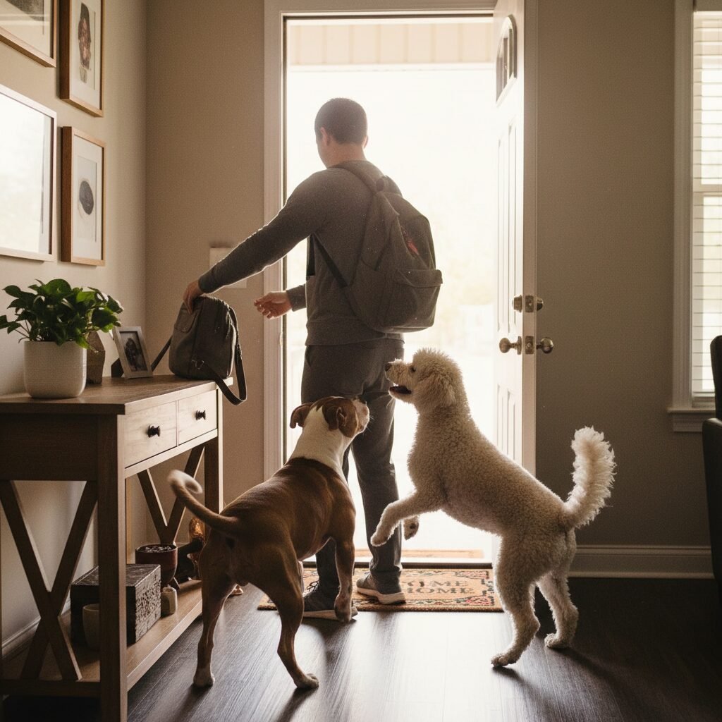 - Ignore Excited Behavior: If your dogs are jumping, barking, or whining, ignore them completely. Go about your business—put down your keys, take off your coat, check the mail.