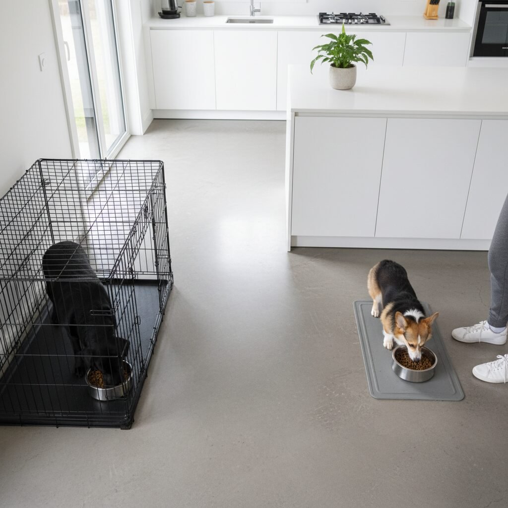 - Separate Feeding Locations: Feed your dogs in separate rooms, in their individual crates, or on opposite sides of a room with a physical barrier (like a baby gate) between them. They should not be able to see or reach each other while eating.
