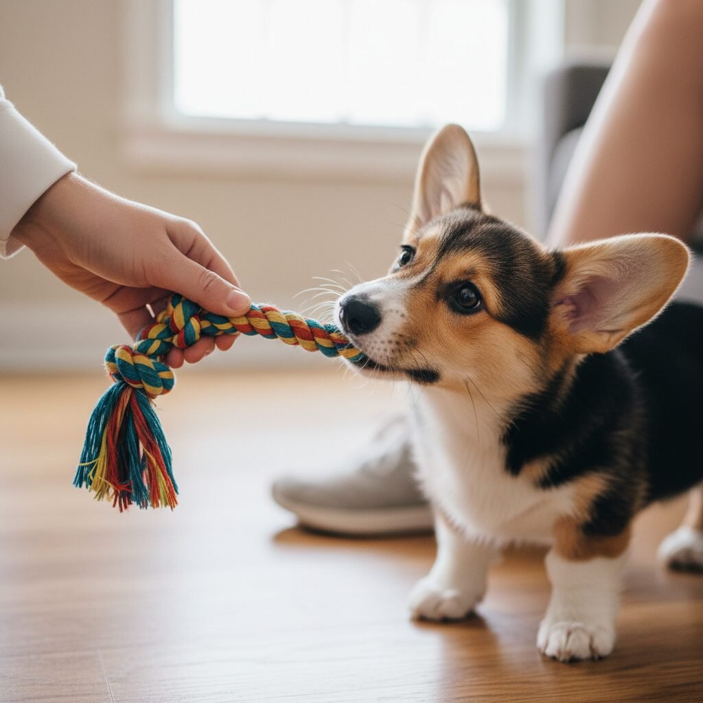 This is the most critical step. You must show your Corgi what you want them to do instead. Always have an appropriate toy ready. When you see your Corgi gearing up to nip—they might crouch, their eyes might fixate on your feet—preempt the behavior. Wiggle the toy, make it exciting, and encourage them to bite and play with the toy instead of your ankle. If they nip you first, use the ‘Stop the Game’ technique, and once they’ve disengaged, immediately offer the appropriate toy to redirect their energy. This channels their need to bite onto an acceptable object.