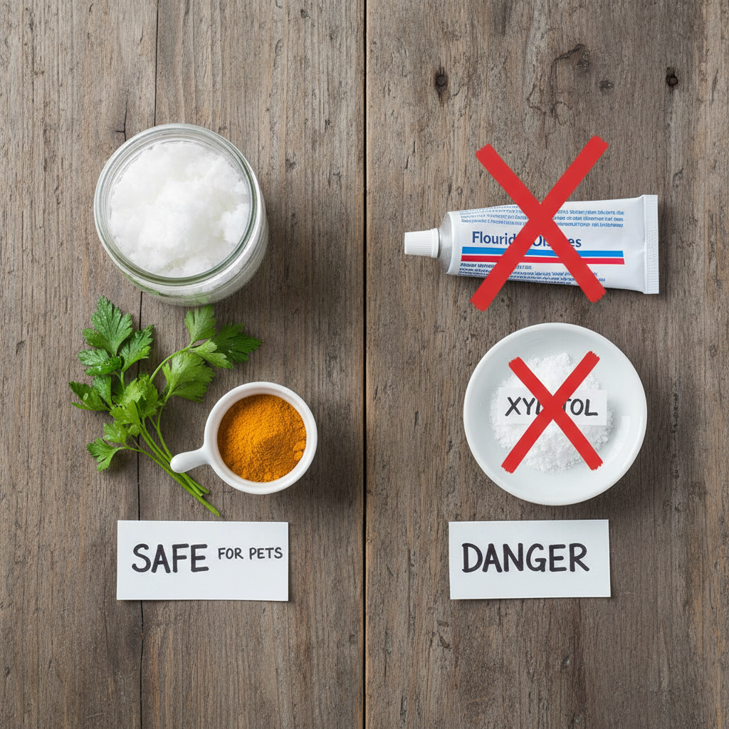 | Coconut Oil: Contains lauric acid, which has natural antibacterial and anti-inflammatory properties that help reduce plaque-causing bacteria. | Xylitol: An artificial sweetener that is extremely toxic to dogs. It can cause a rapid, life-threatening drop in blood sugar (hypoglycemia) and liver failure. |