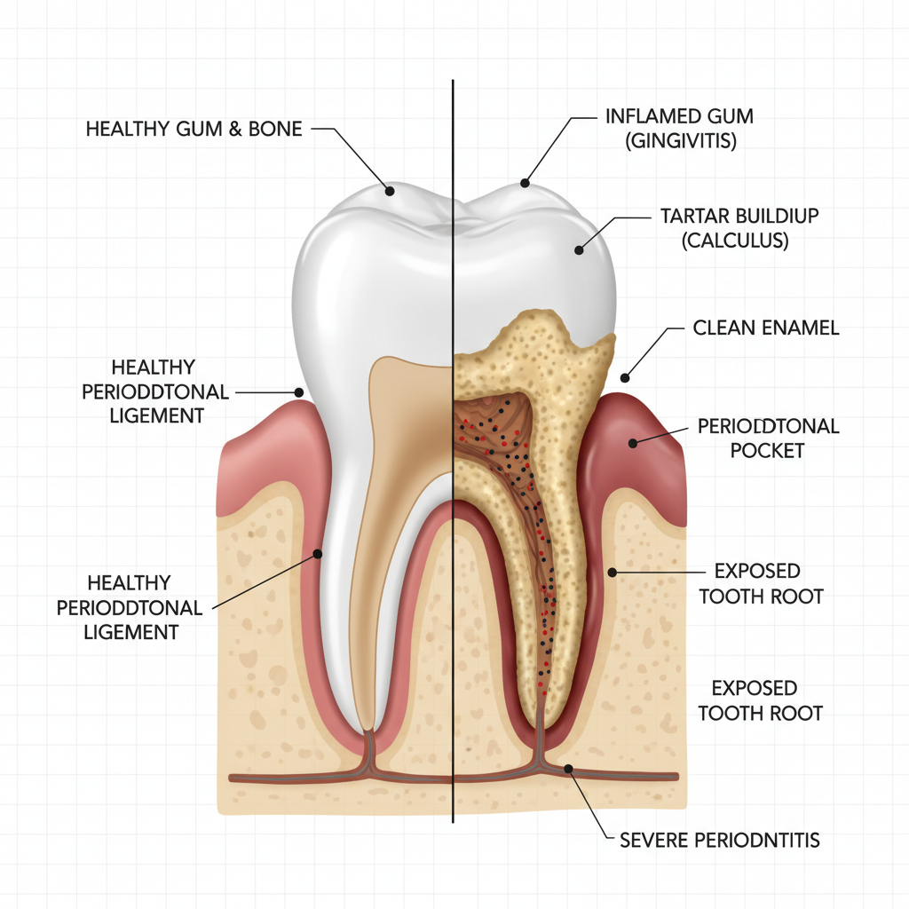 - Loose Teeth: This is a sign of advanced periodontal disease and significant bone loss.