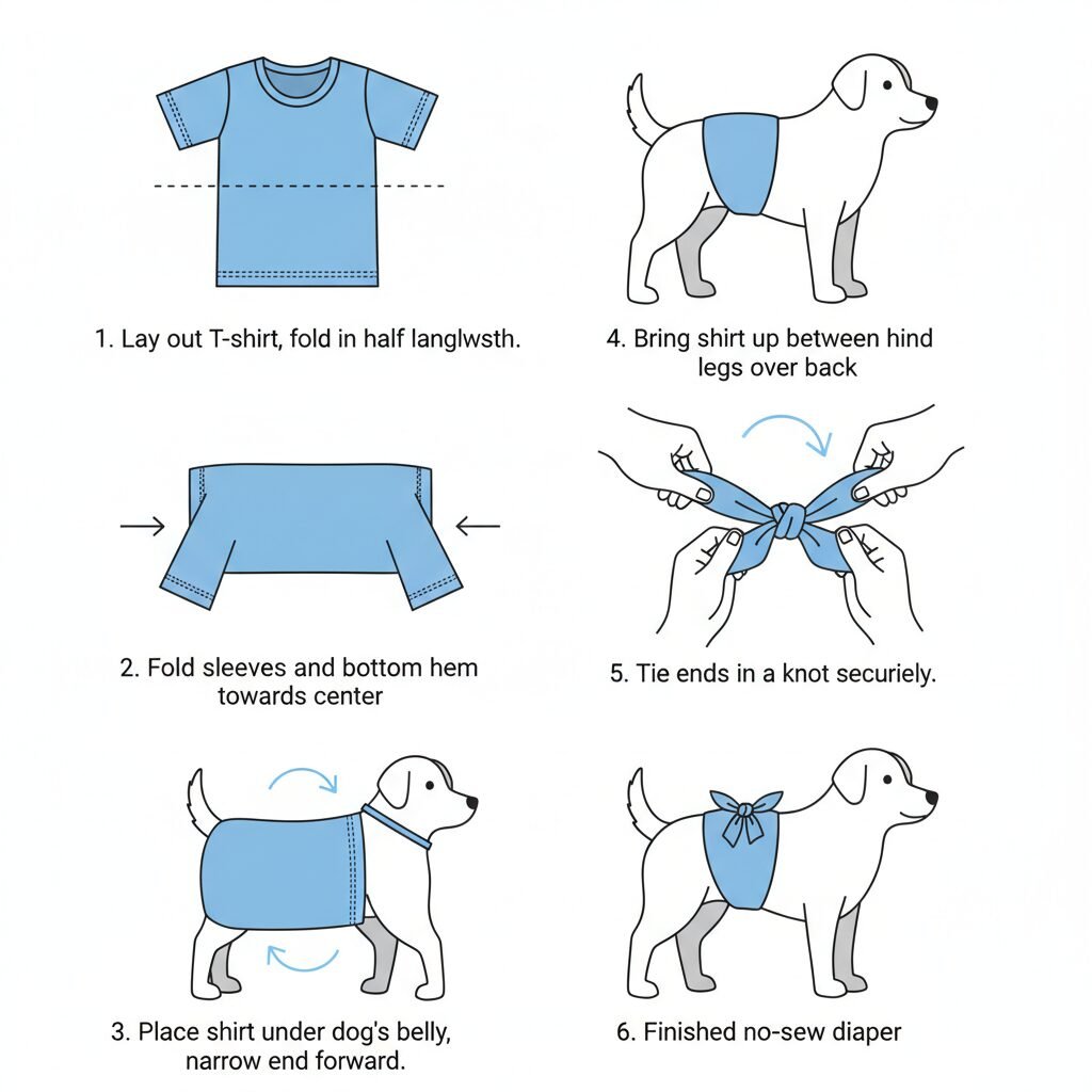This is the fastest and simplest method, perfect for an emergency or for those who do not sew. It requires only an old t-shirt and a pair of scissors. The key is to select a shirt size that corresponds with your dog’s size—a small shirt for a small dog, a large or extra-large for a bigger breed.