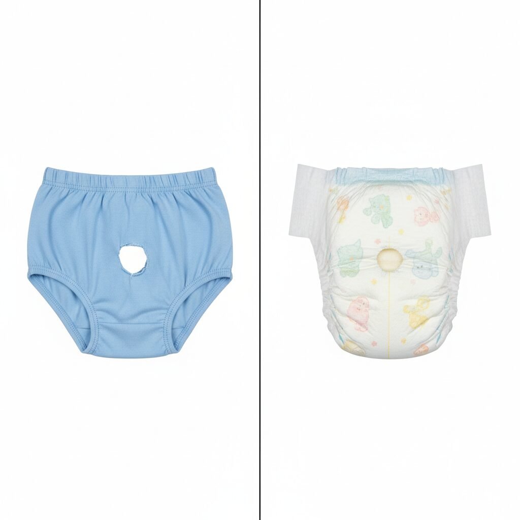 | Custom-Sewn Panty | Fabric (e.g., cotton, flannel for lining; PUL/waterproof fabric for outer layer) | Sewing machine or needle/thread, elastic, sew-on Velcro or snaps, paper for pattern |