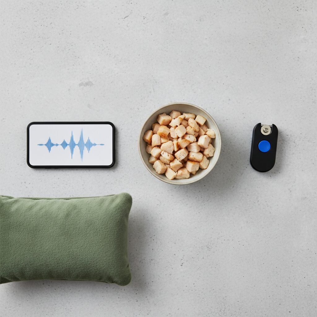 2. A Sound Source: You will need a smartphone, tablet, or computer to play recorded kitchen noises. Find high-quality recordings of triggers like blenders, chopping, and sizzling on platforms like YouTube.