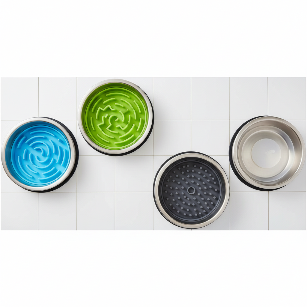 | Suction Cup Base | The insert has one or more suction cups on the bottom to secure it firmly to the bowl. | Enthusiastic eaters who might try to flip or remove the insert. Works best with smooth bowls (stainless steel, ceramic). | Extremely stable, prevents the dog from cheating by removing it. | Suction can fail on textured or plastic bowls; suction cups can be harder to clean. |