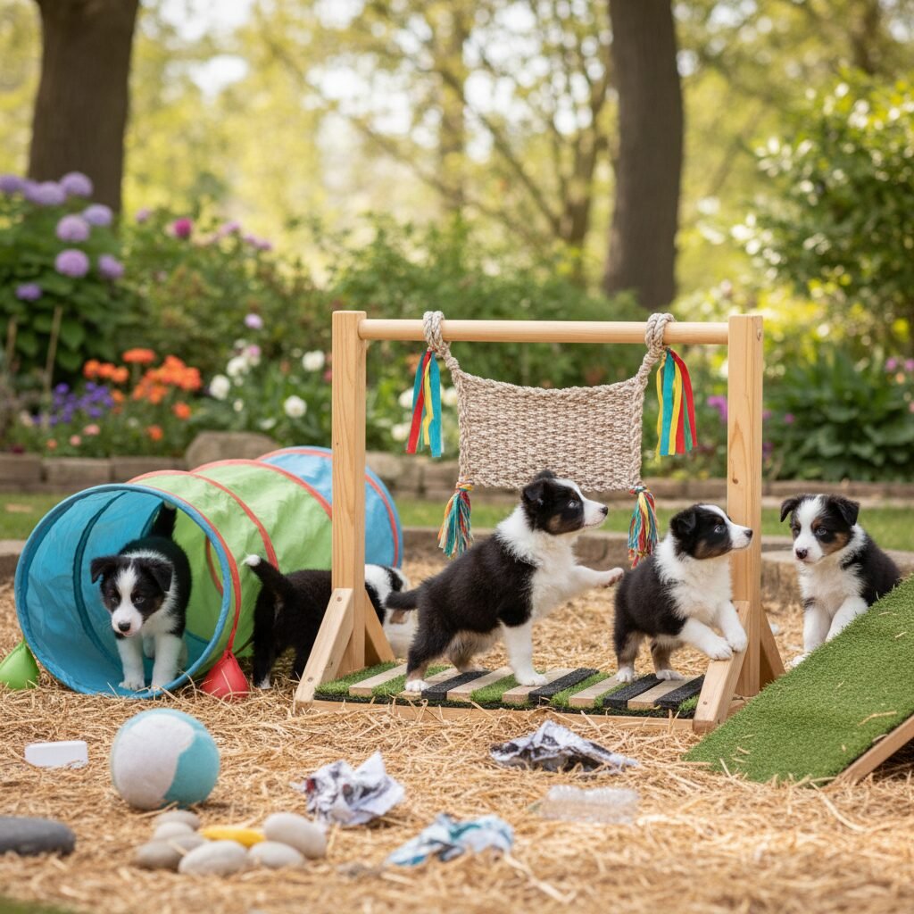 - Environmental Enrichment: After 3 weeks of age, the whelping box and puppy play area should be regularly updated with new objects. This includes items with different textures (slick, rough, soft), shapes, and sounds. Small, safe obstacles to navigate, like tunnels or low ramps, build confidence and body awareness.