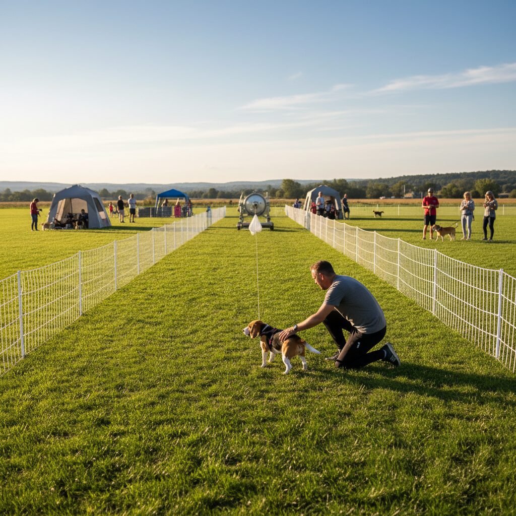 The course itself is designed for safety. It is flat, securely fenced, and the finish line includes a generous catch pen area of at least 30 yards to allow dogs to decelerate safely before being retrieved by their owners.