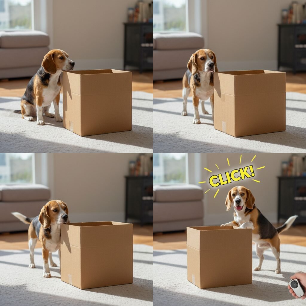 3. Raise the Criteria: After a few repetitions of clicking for a glance, your dog will likely start offering it consistently. Now it’s time to ask for a little more. Wait for a slightly more significant behavior. Perhaps they turn their head fully towards the box or take a single step in its direction. When they do, click and treat. You are now only rewarding this ‘better’ behavior.