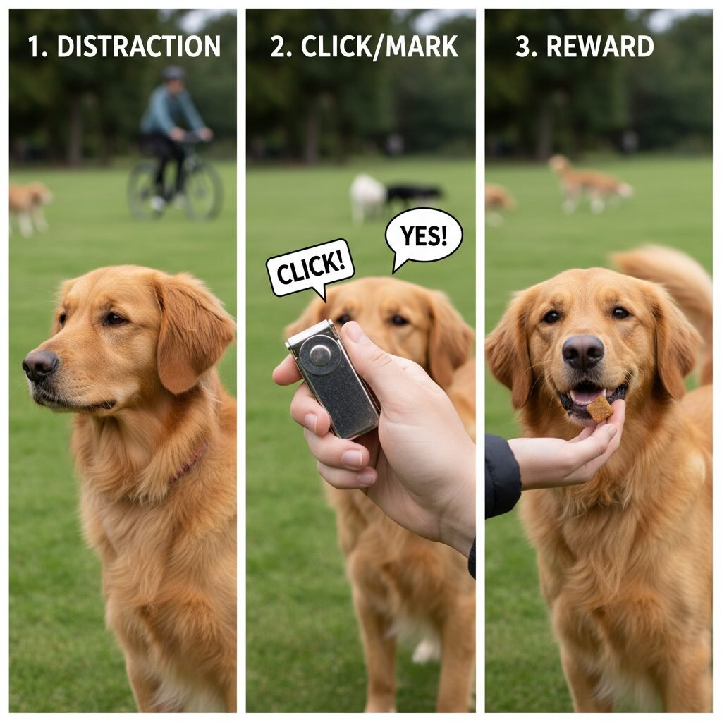 Now we combine the threshold and the marker. This is the core of counter-conditioning. We are changing the dog’s emotional response from "Oh no, a dog!" to "Oh look, a dog! Where is my payment?"