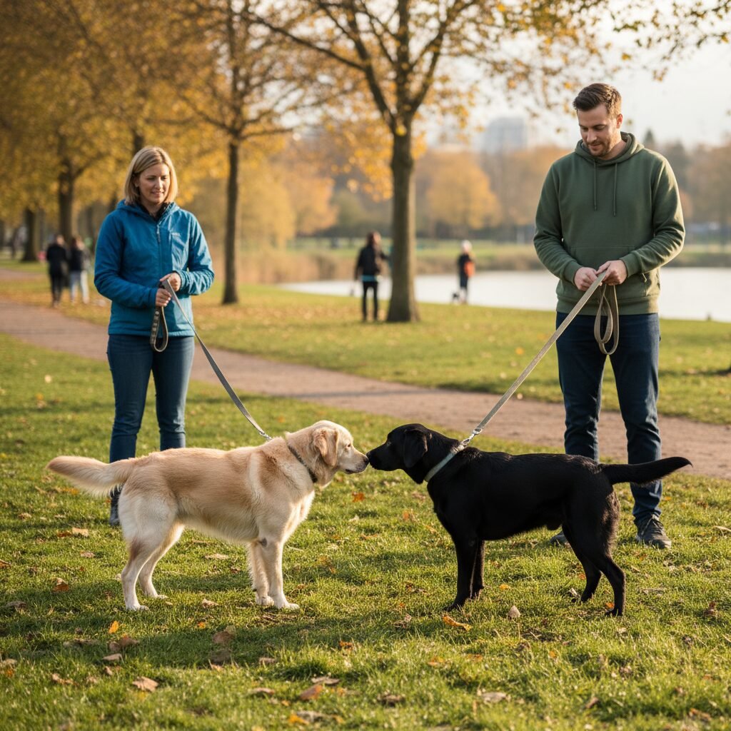 When you are ready to close the gap (after weeks or months of successful parallel walks), use the Arc Method. Walk in a large semi-circle towards the other dog, allowing your dog to sniff the ground and gather olfactory information without forced interaction. If tension rises (tail goes up, body freezes), immediately arc away to disengage.