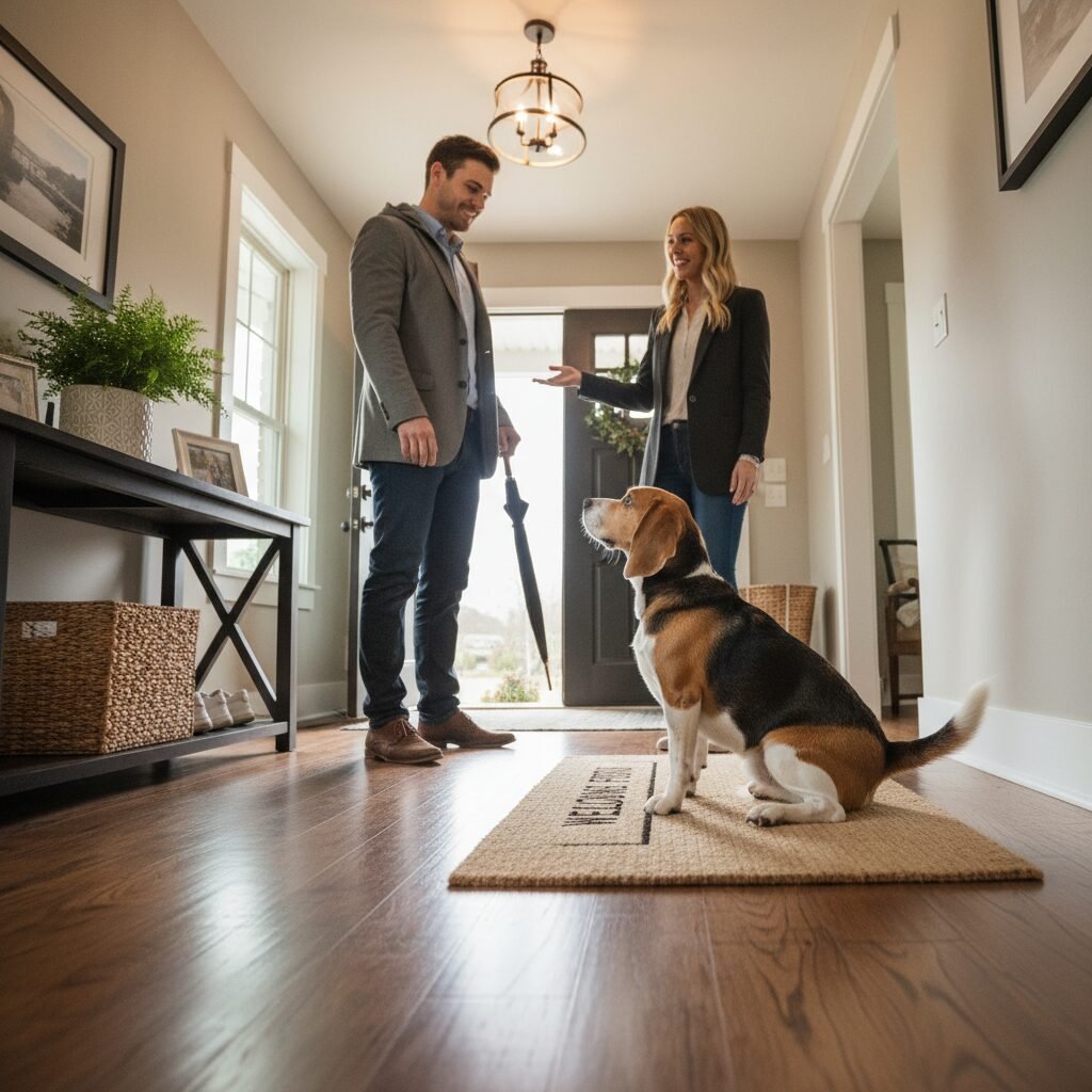 - Send to Mat: Once the initial entry is complete, cue your dog: “Go to Your Mat.” Because you have practiced this extensively, your dog should comply. Walk them over if needed.