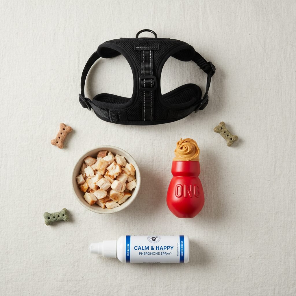 - Calming Aids (Optional): Some dogs may benefit from additional support. Products like a Thundershirt, which applies gentle, constant pressure, can have a calming effect. Pheromone sprays (like Adaptil) that mimic the calming pheromones of a mother dog can also be sprayed in the car before a session.