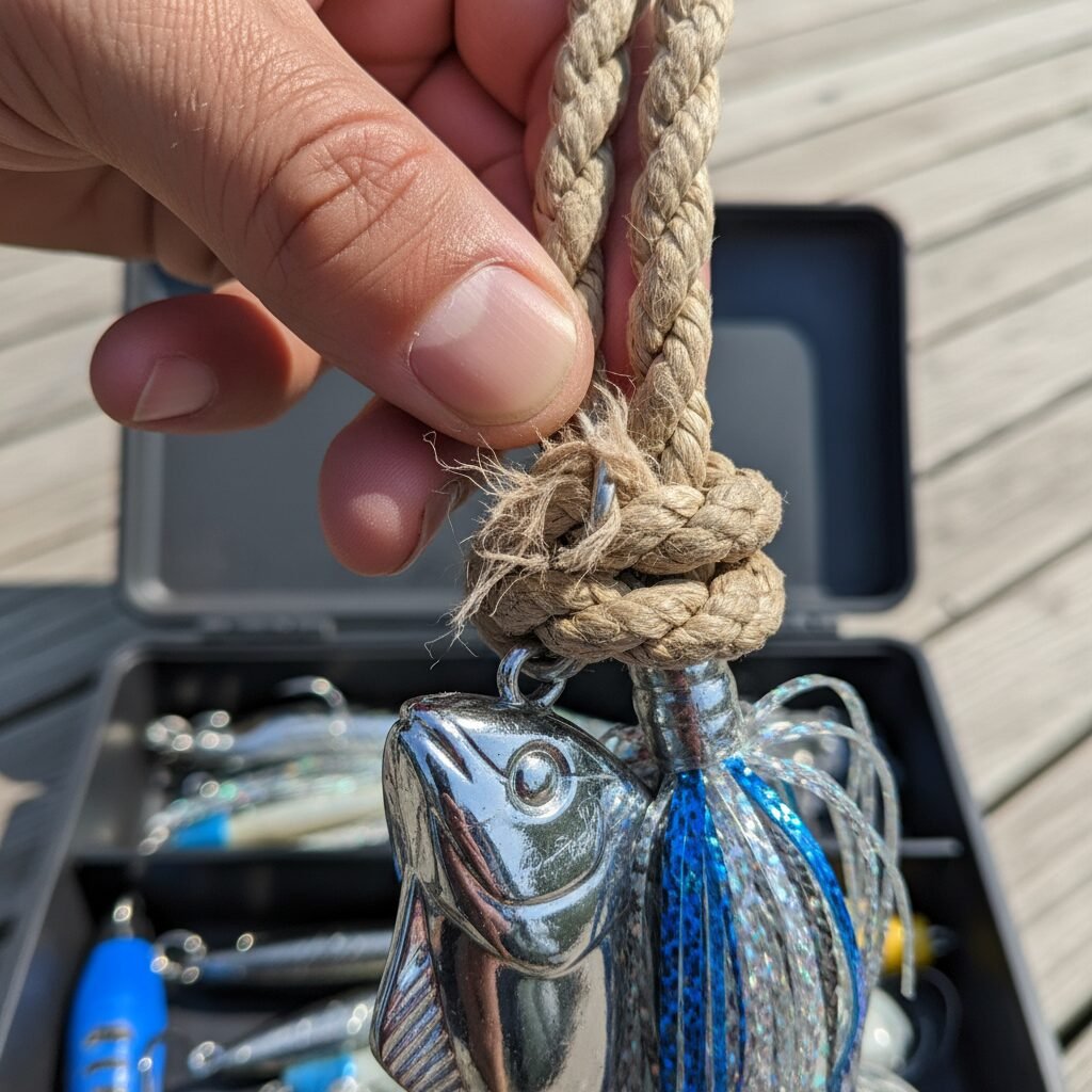 - Prepare and Attach the Rope: Tie one end of your rope securely to the bottom carabiner using a strong, reliable knot like a bowline or a figure-eight follow-through. Once the knot is tied, use a utility knife to cut the rope to the desired length. The goal is for the lure to hang a few inches above your dog’s head when they are standing. After cutting a nylon rope, use a lighter to carefully melt the end to prevent it from unraveling.