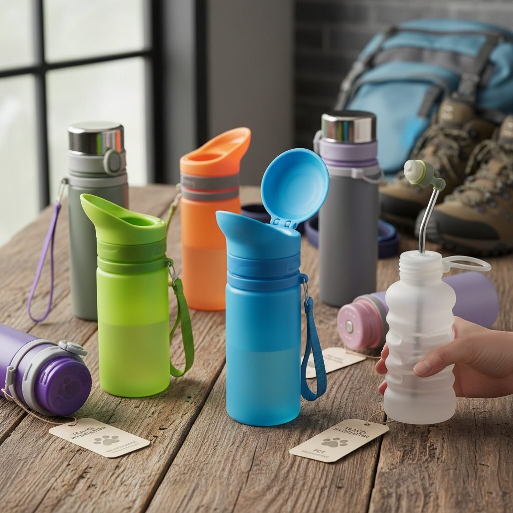 - Bottle with Detachable Bowl/Lid: These popular models feature a standard water bottle with a lid that unscrews and doubles as a small drinking bowl. This is often the easiest type for dogs to learn with, as it mimics a familiar drinking vessel.