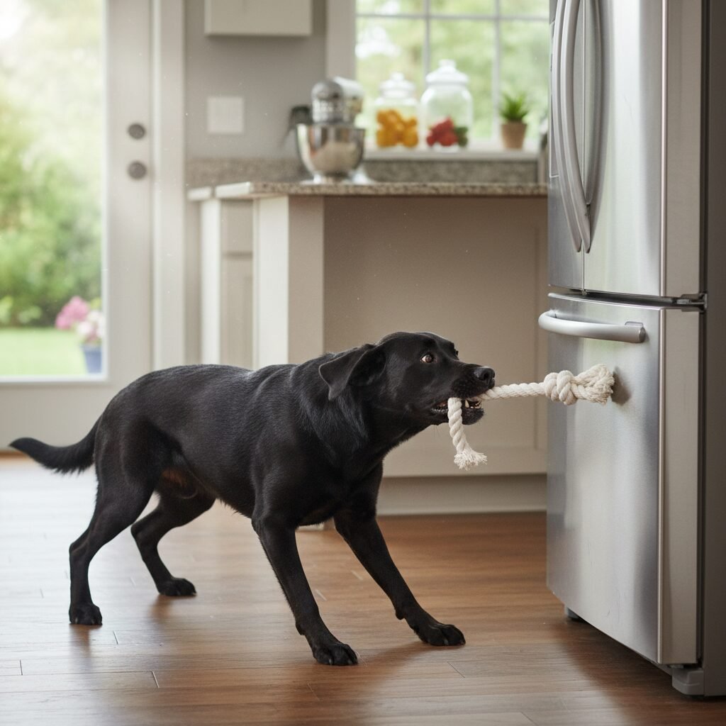 | Fridge Rope | To provide a clear, safe target for opening the door. | Choose a material that is comfortable for the dog to grip with its mouth, like braided fleece or thick cotton rope. |
