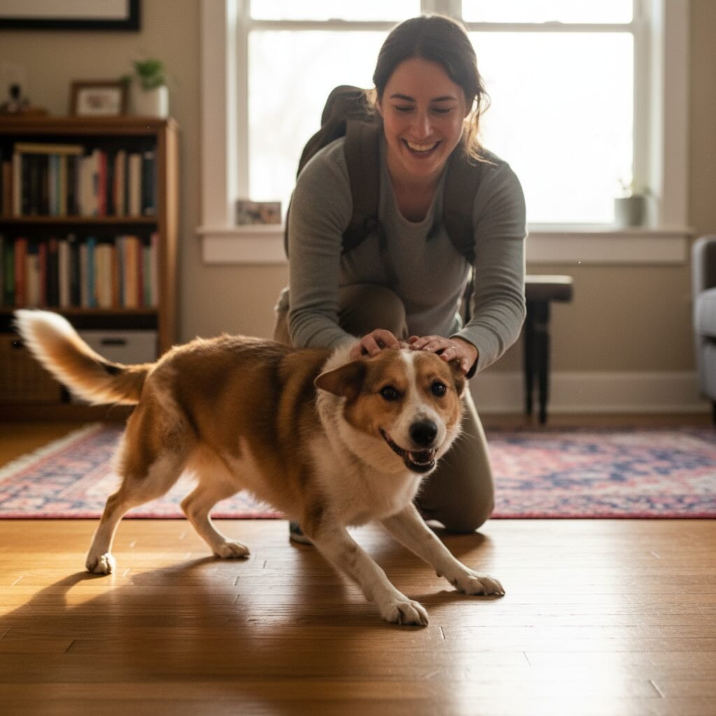 • DON’T Laugh or Over-Excite the Dog: While it can look amusing, laughing loudly or getting overly excited can add confusing energy to the situation. A calm, reassuring response is always best.