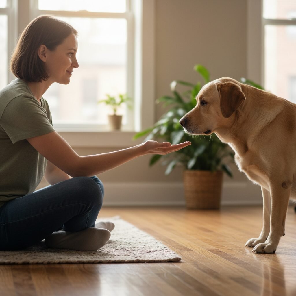 • DO Offer Gentle, Non-Threatening Affection: If you know the dog well and are certain it’s a friendly gesture, you can offer a gentle pat on the chest or side. Avoid patting the top of the head, which can be perceived as intimidating by a dog in a submissive state.