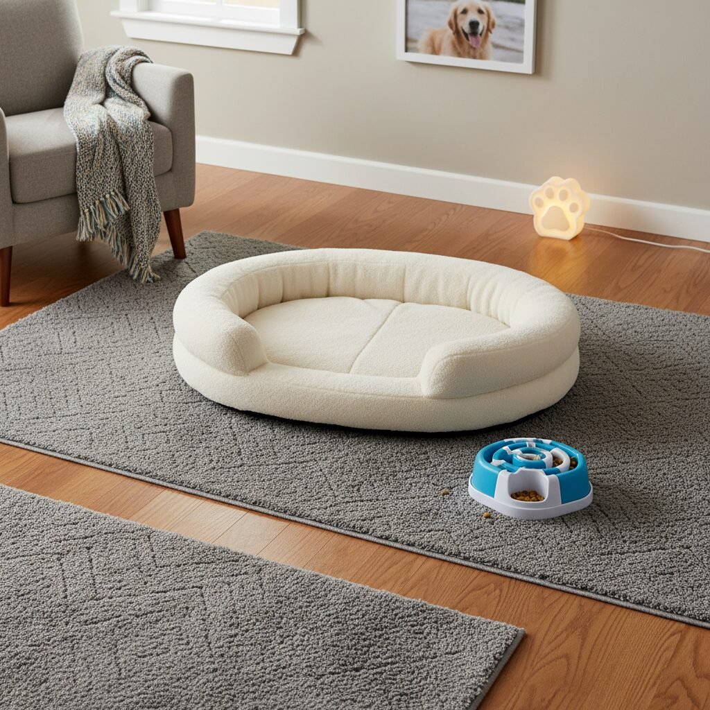 - Home Modifications: Use night lights to help them navigate in the dark. Add non-slip rugs or runners on slick floors. Use baby gates to block off stairs or other hazardous areas. Ensure their food, water, and bed are easily accessible.