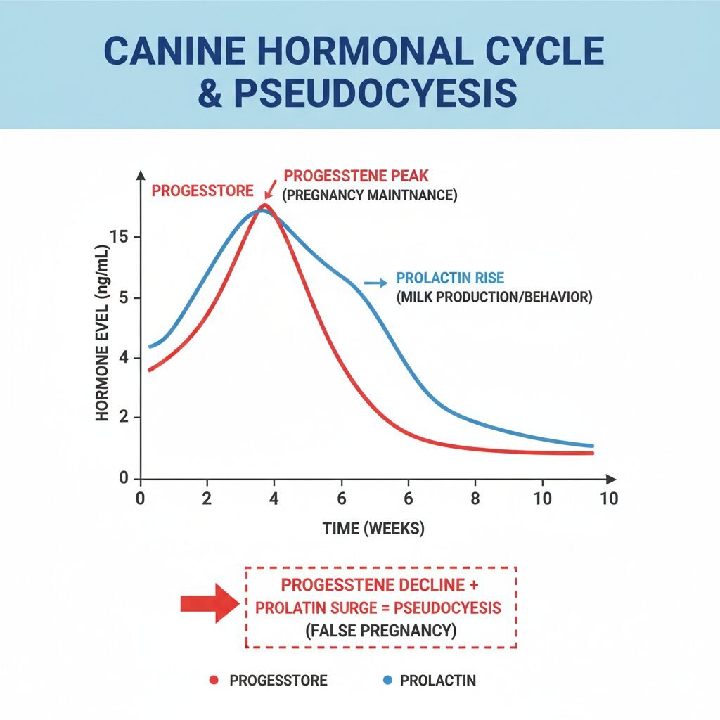 In a non-pregnant dog, this same hormonal sequence occurs. The steep progesterone drop and subsequent prolactin spike effectively ‘trick’ her body and brain into thinking she is about to whelp. This hormonal signal is so powerful that it produces the full suite of physical and behavioral symptoms associated with late-stage pregnancy and motherhood. Essentially, from a hormonal perspective, every intact female dog experiences a ‘pregnancy’ after her heat cycle; the only difference is whether or not there are fetuses in the uterus.