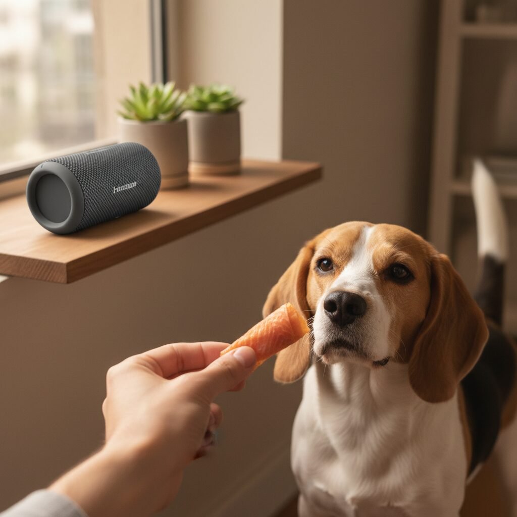 Once you have the sub-threshold volume, begin the counter-conditioning process. Turn on the sound, and immediately begin feeding your dog a steady stream of high-value treats. Make it a fun game. After 30-60 seconds, turn the sound off, and immediately stop the treats. The rule is simple: The scary sound makes the amazing treats appear. The sound stops, the treats stop. Repeat this several times in a short session. The goal is for your dog to start associating the sound with the imminent arrival of something wonderful.