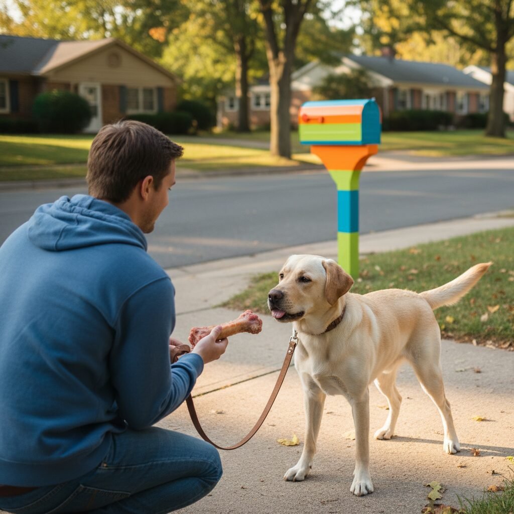 Example: If your dog is scared of the trash can. Start at a distance where your dog can see the can but is not reacting fearfully (this is called the ‘threshold’). Every time they look at the can, give them a fantastic treat. Do not ask for any behavior. Simply look = treat. After many repetitions, the sight of the can will start to predict the treat, and their emotional response will shift from fear to happy anticipation. Only then should you gradually decrease the distance, one tiny step at a time, over multiple sessions. -