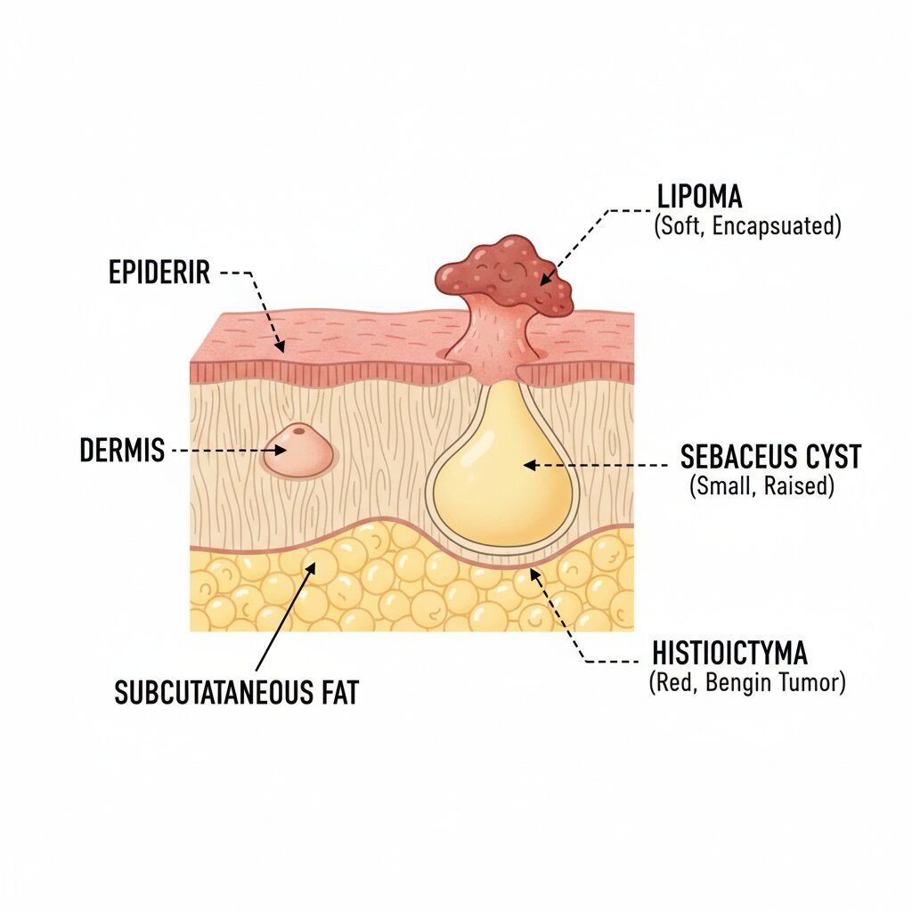 - Mobility: Does it move freely with the skin, or does it feel anchored to the muscle or bone underneath?