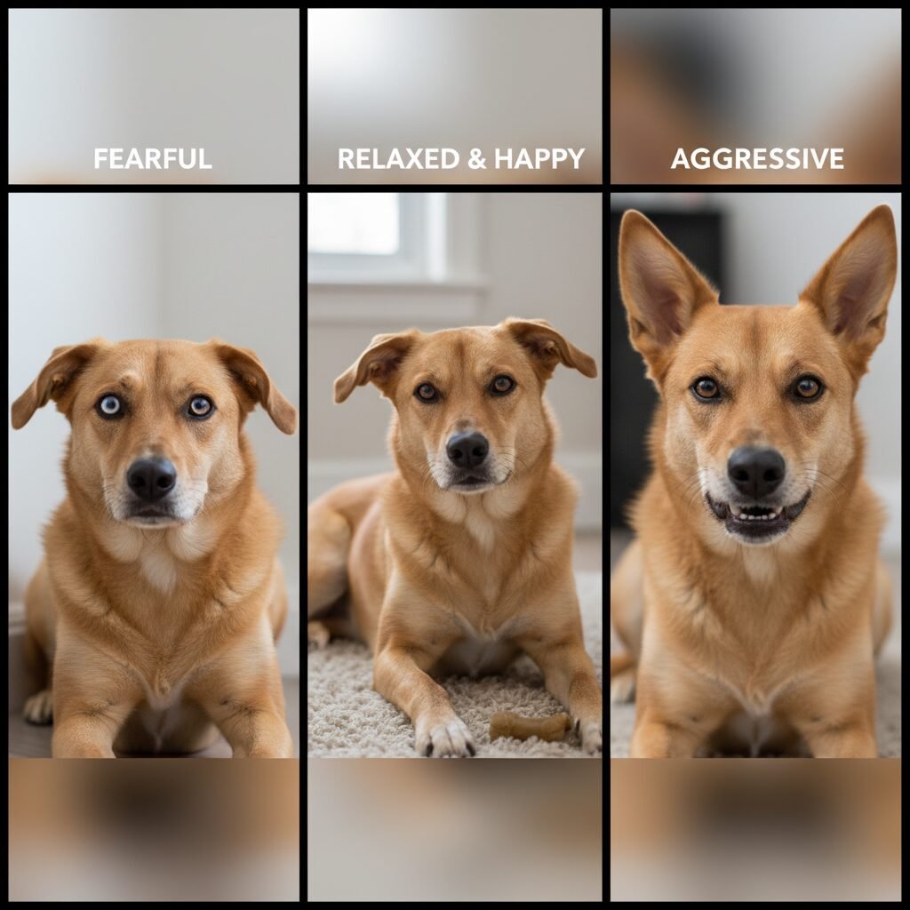 - Eyes: A relaxed dog will have soft, almond-shaped eyes with a gentle gaze. A hard, direct stare indicates a challenge or threat. Conversely, showing the whites of the eyes (known as ‘whale eye’) is a significant sign of stress and anxiety.