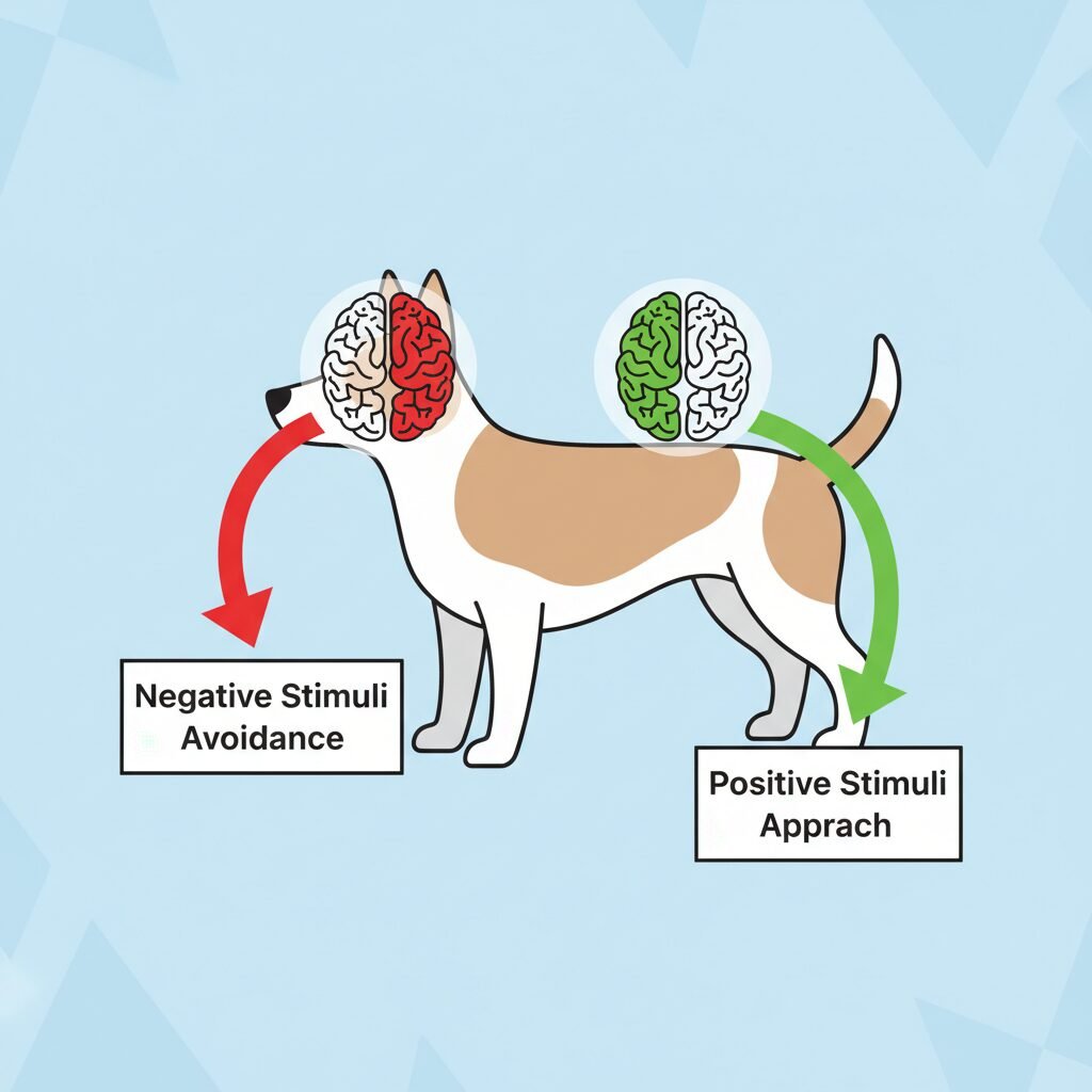 - Wagging More to the Left: Conversely, a wag biased toward the dog’s left side is linked to negative or withdrawal-associated emotions. When faced with a potential threat, such as an unfamiliar, dominant dog, the right hemisphere of the brain is activated. This controls the left side of the body, producing a wag that is more pronounced to the left.