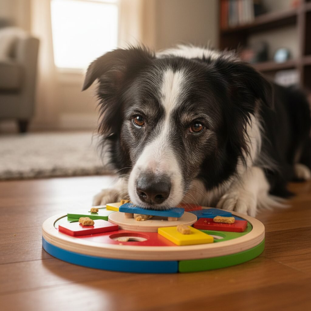 Interactive Puzzle Toys Use toys that require the dog to roll, nudge, or slide pieces to dispense kibble or treats. Promotes independent problem-solving, alleviates boredom, and can slow down fast eaters.