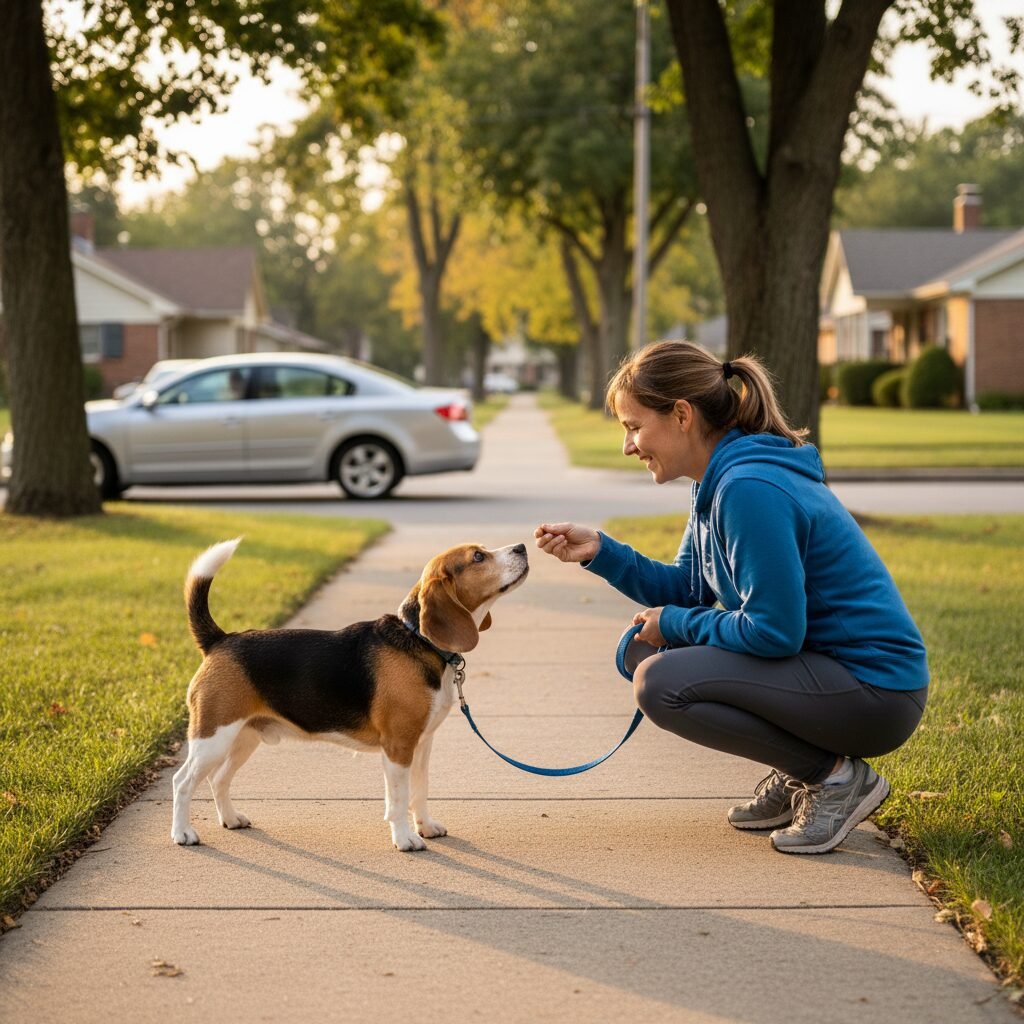 2. Mark and Reward Calmness (Look at That Game): Position yourself at this safe distance. The moment your dog notices a car, say ‘Yes!’ or click your clicker and immediately give them a high-value treat. The goal is for the dog to look at the car, then immediately look back at you, expecting a reward. Car = Treat.