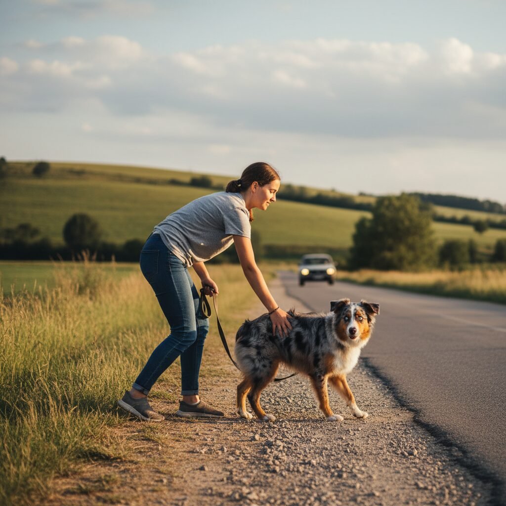• Continued Practice: Even after your dog seems ‘cured,’ continue to have short, positive training sessions near roads to keep the skills sharp.