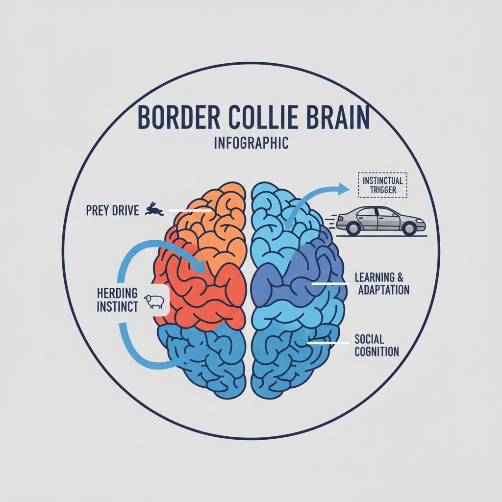 For herding breeds like Border Collies, Australian Shepherds, and Corgis, a moving car can be perceived as a large sheep or cow that needs to be controlled and directed. Their instinct is to ’round up’ the moving object, circling it and nipping at its ‘heels’ (the tires). They aren’t trying to harm the car; they are trying to do the job they were bred for.