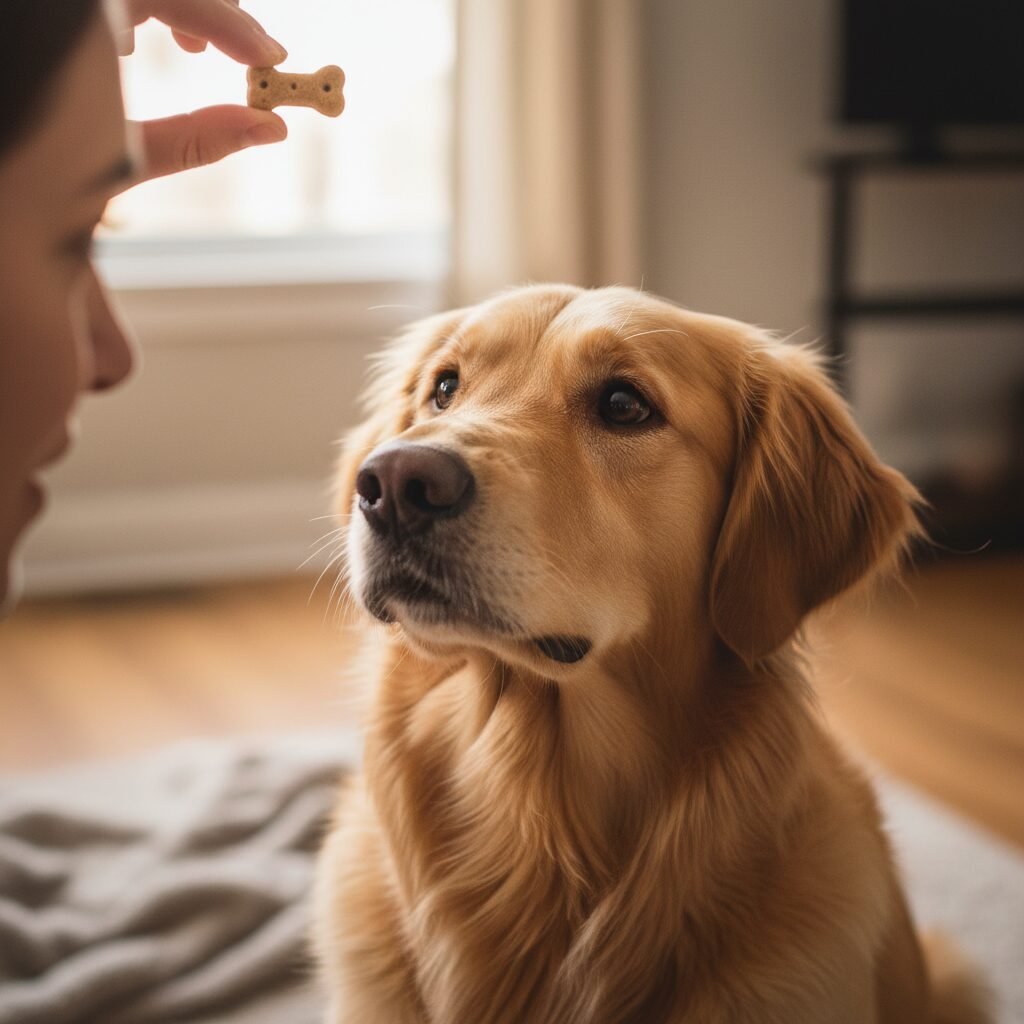 High-Value Treats Acts as a powerful motivator to override instinctual drive. Dry kibble or low-value biscuits.