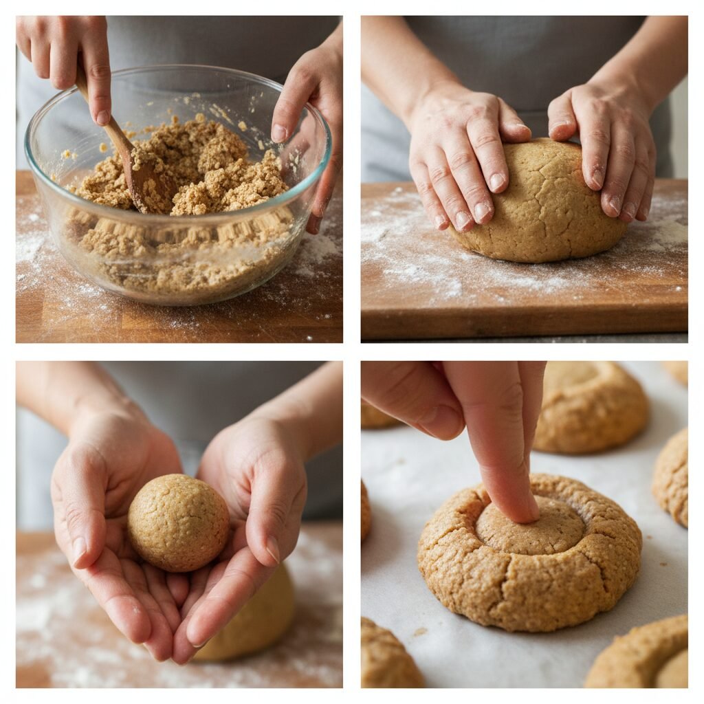 - Combine Dry and Wet Ingredients: In a medium-sized mixing bowl, add the 1/2 cup of peanut butter and 1 cup of oat flour. Use your spatula to begin mixing them together. The mixture will be crumbly and dry at this stage.