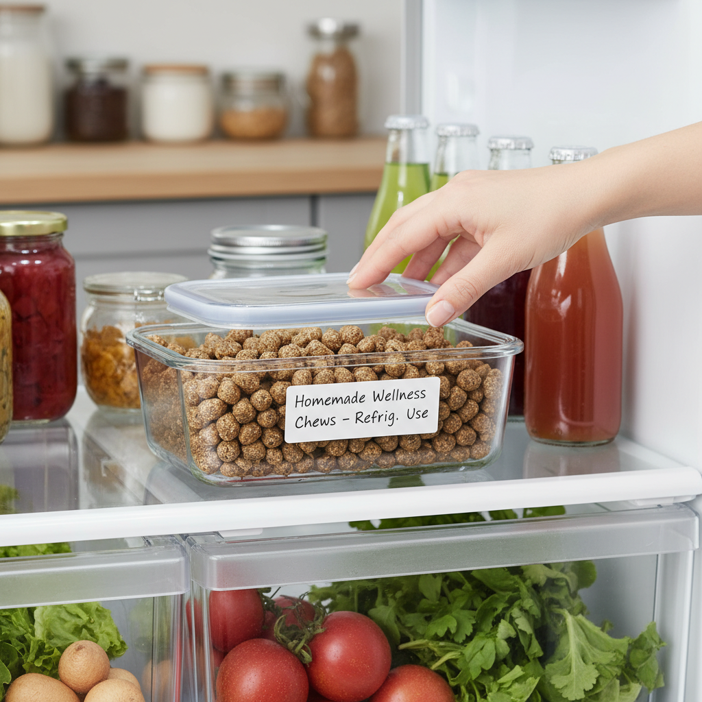 - Refrigeration: Place the finished chews in an airtight container. They will keep in the refrigerator for up to 7 days.