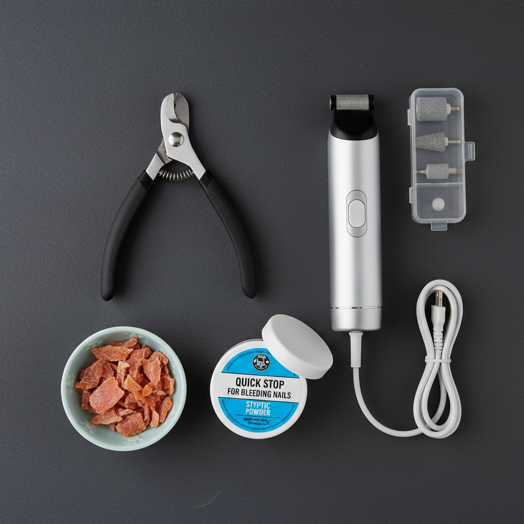 Accidents happen, even to seasoned professionals. Having a clotting agent on hand is an absolute necessity. Styptic powder is an antihemorrhagic agent that works rapidly to stop bleeding from minor cuts, such as a nicked quick. It contains ingredients like ferric subsulfate which contracts the blood vessels. Do not begin a nail trim without having this, or a substitute like cornstarch or a styptic pencil, within immediate reach. Fumbling for a solution while your dog is bleeding will only amplify the stress for both of you.
