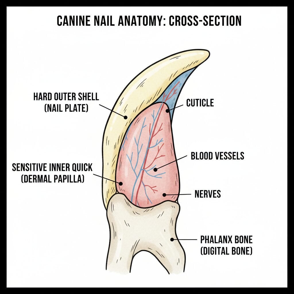 To effectively address the fear, you must first understand its biological basis. A dog’s nail is not a lifeless piece of keratin; it is a complex structure with a live, sensitive core. The hard outer shell that we see is only part of the story. Within this shell lies the quick, or pulp, a pinkish tissue rich with blood vessels and nerves. If you have ever broken a nail too far down, you have a mild sense of the sharp, intense pain cutting the quick can cause.