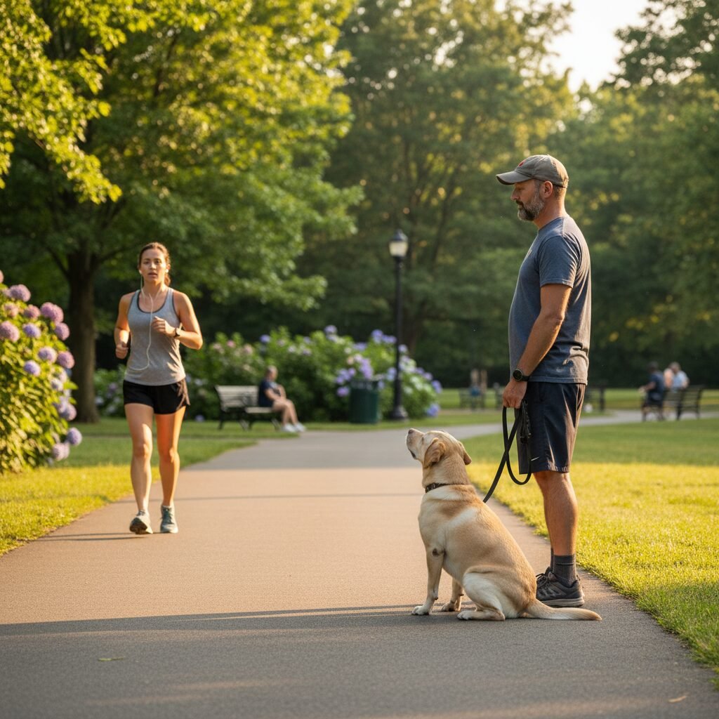 - Create Distance: If the path is narrow, be proactive. Step off to the side with your dog, putting yourself between your dog and the approaching person. This body block prevents a direct line to the stranger.