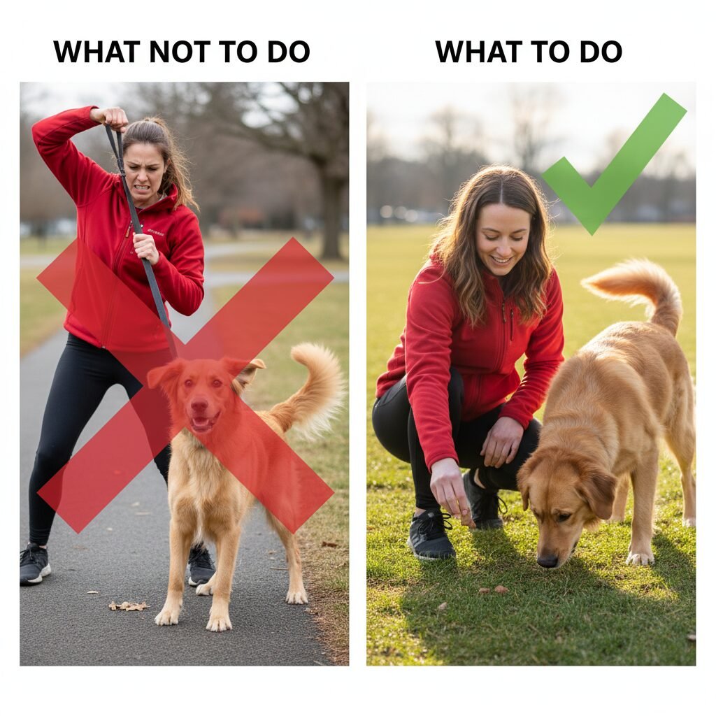 | Using Punishment | Yelling, scolding, or using leash jerks when your dog sniffs creates fear and anxiety. It damages your bond and teaches the dog that people approaching is a scary event, which can lead to other reactivity issues. It doesn’t teach them what you want them to do. Instead: Focus entirely on positive reinforcement. Manage the environment to prevent the mistake, and heavily reward the behaviors you want to see, like sitting politely or going to their mat. |