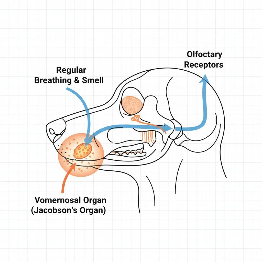 Beyond their primary nasal cavity, dogs have a specialized olfactory organ called the vomeronasal organ, or Jacobson’s organ. Located in the roof of the mouth with ducts opening behind the incisors, this organ is specifically designed to detect pheromones—chemical signals that convey complex social information. When a dog sniffs intently, you might see them chatter their teeth or flare their nostrils; this action helps to push scent molecules up into the vomeronasal organ for detailed analysis.