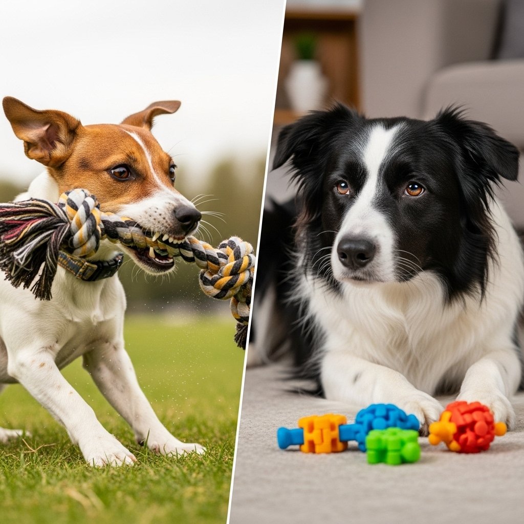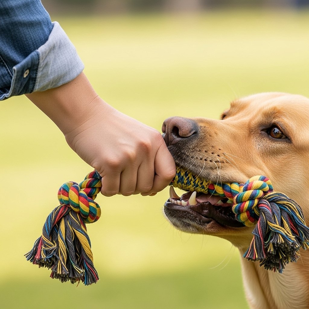 Interactive Toys For shared playtime with you. Builds bond and teaches rules. Tug ropes, flirt poles, fetch balls.