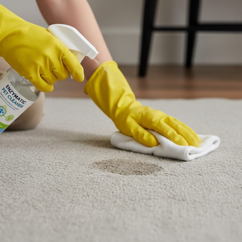 You must use an enzymatic cleaner specifically designed for pet stains. These products contain beneficial bacteria and enzymes that literally break down and ‘eat’ the organic matter in the urine, permanently eliminating the odor at a molecular level. Saturate the area thoroughly, following the product’s instructions, to ensure it reaches the carpet padding or subfloor.