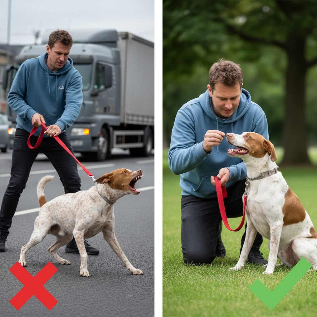 A leash is a safety tool, not a solution for reactivity. Follow these strict protocols: