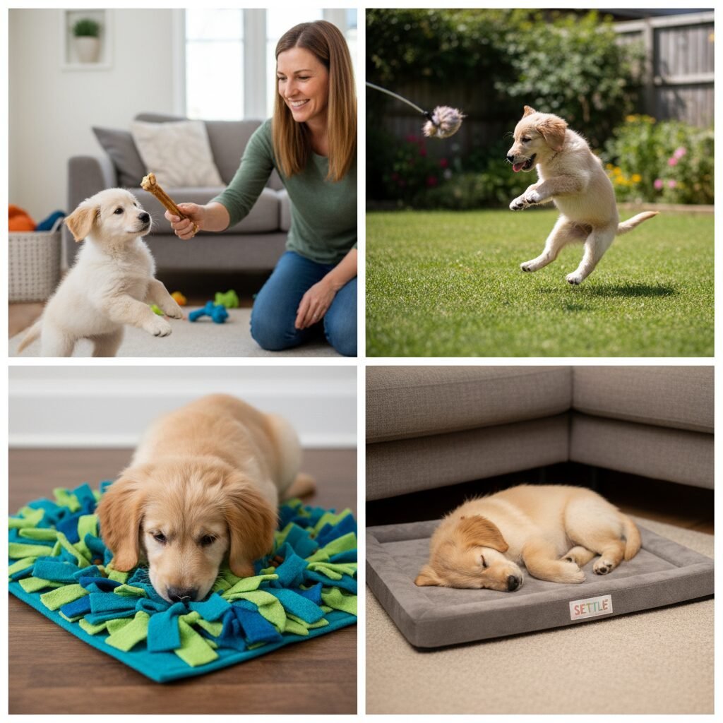 | 10:30 AM | Crated Nap with a Safe Chew Toy | Rest & Self-Soothing |