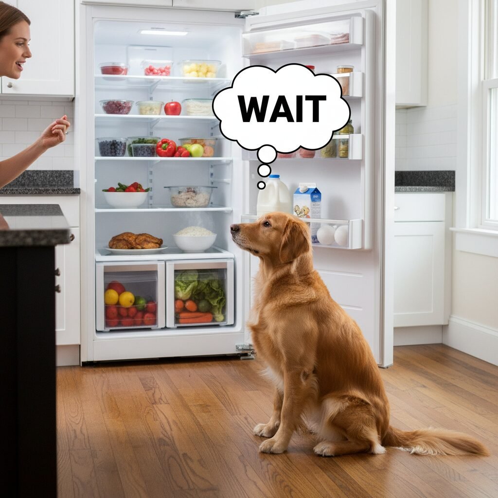- Crucially, you must now heavily reinforce the ‘wait’ command. As soon as the door is open, give your ‘wait’ cue. Reward the dog for staying put and not diving into the fridge. The reward comes from you, not from the contents of the refrigerator. You can also teach a ‘close it’ command by rewarding them for nudging the door shut.
