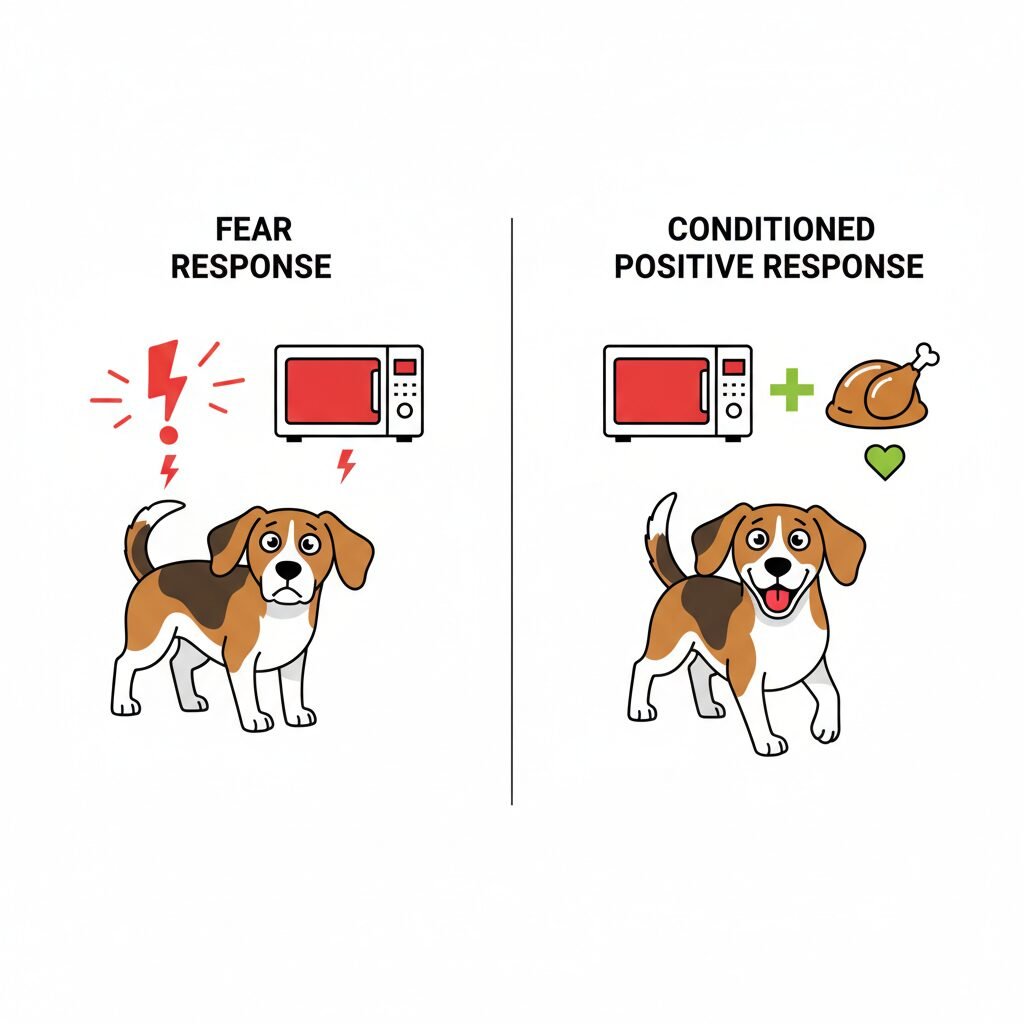 A fear can develop through a single negative experience. If the microwave beep once coincided with another frightening event—such as a loud crash, a thunderstorm, or even just being startled from a deep sleep—the dog may have formed a powerful negative association. This is a classic example of Pavlovian conditioning. Furthermore, puppies that are not exposed to a wide variety of household sounds during their critical socialization period (3 to 16 weeks of age) are more likely to develop fears of unfamiliar noises later in life. Without early, positive exposure, a microwave beep is simply a strange, unpredictable, and potentially threatening sound.