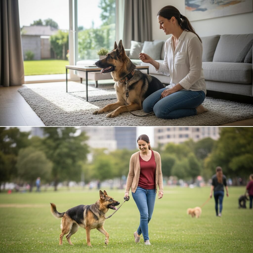 | Quiet Park (on leash) | Level 4: High | Distant dogs, new smells, more people. | Hold focus for 3-5 seconds despite environmental activity. |