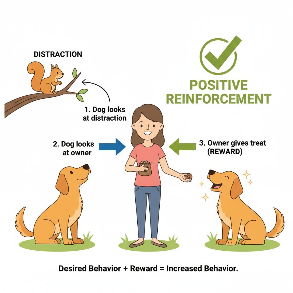Expert Tip: Think of attention as a currency. Every time your dog offers it to you, you must pay them generously with a high-value reward. This ensures they will continue to ‘invest’ their attention in you over environmental distractions.