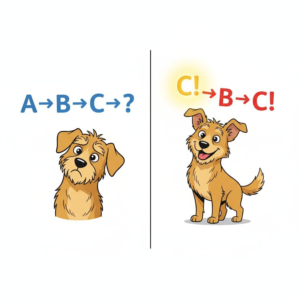 In the backchaining model, every step the dog learns leads directly to the most practiced and rewarding part of the sequence—the final step. This fundamental difference is the key to its power.